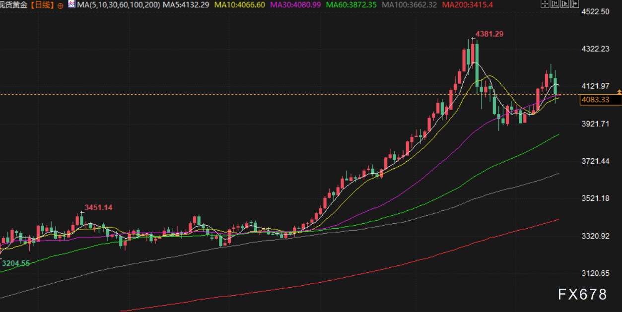 周一(北京时间11月17日)亚市早盘,现货黄金交投于4102美元/盎司附近,金价受累于美联储官员鹰派言论影响,美联储