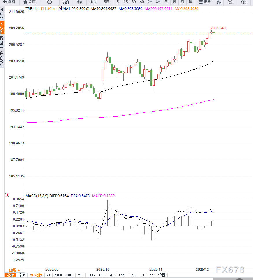 汇通财经APP讯——GBP/JPY在周四亚洲与欧洲早盘维持高位震荡,尽管在208.00附近出现逢低买盘,但整体上涨动力不足。当前汇价仍徘徊在208.50附近,距离本周触及的2008年以来高点仅一步之遥。